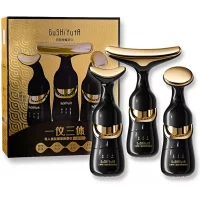This 3-in-1 face and neck massager provides spa-quality skin care at home. It uses special technology to increase collagen production, reduce wrinkles, and tighten skin. Its LED Light Therapy is great for tired skin, acne, blemishes, and puffy eyes.