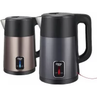 This Disnie DK-2426 electric kettle comes with a 2.5‑liter load capacity and a 1500W, 220V, 50Hz heating element. It features a double‑wall construction with an inner 304 stainless‑steel liner and an outer plastic heat‑proof shell that remains cool to the touch. The kettle includes automatic shut‑off at 100 °C, boil‑dry and overheat protection, and a triple‑safety system with an illuminated on/off switch. Also, it has a 360° rotatable cordless design, which is enabled by a full copper cord that terminates in a two-pin VDE plug.