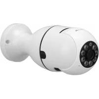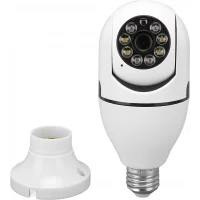 This Vision Wi-Fi Bulb Spy Camera has a standard E27 socket and delivers 1080P Full HD resolution with a 3.6 mm lens. This camera supports full-color infrared night vision up to 25 m. It also has motion detection with automatic tracking and a 2-way voice intercom. The camera can record continuously or on abnormal detection. The camera is easy to use with Android and iOS devices, perfect for home security.